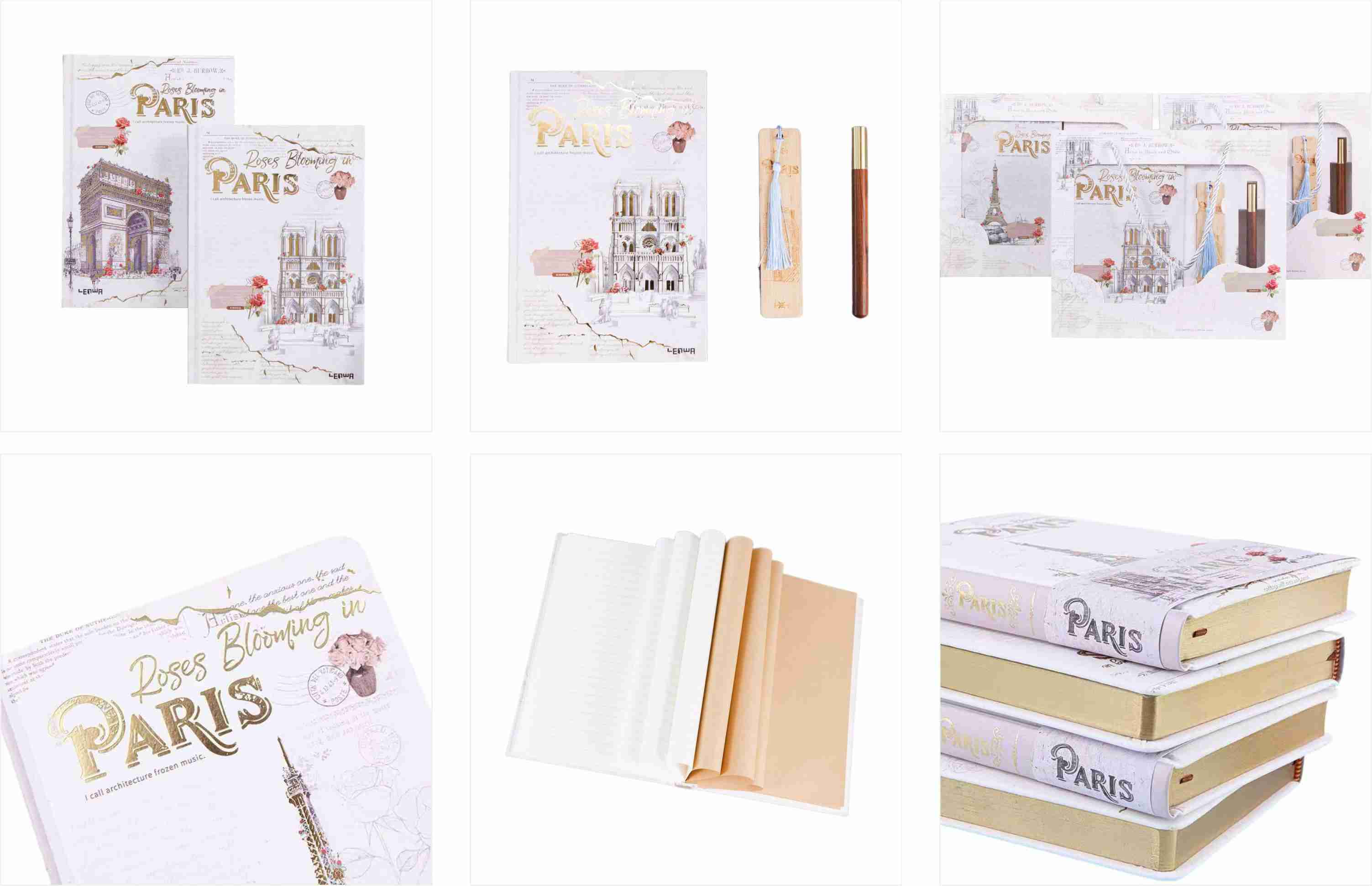 يتميز الغلاف بمباني مبدئية مثل كاتدرائية نوتردام و Arc de Triomphe ، مع الورود وعناصر الطوابع القديمة ، مع إحياء جو فني قوي. يتبنى إطار الصفحة الداخلية التكنولوجيا المطلية بالذهب ، مما يضيف شعورًا بالرفاهية. يعد تصميم الخط الأفقي مناسبًا للكتابة اليومية ، وتضمن الورقة ذات اللونين البيج المكون من 2 ألوانًا أن تكون الكتابة سلسة وحبر-سواء كان سجلًا غير رسمي أو يوميات ، كل صفحة مليئة بالجو.