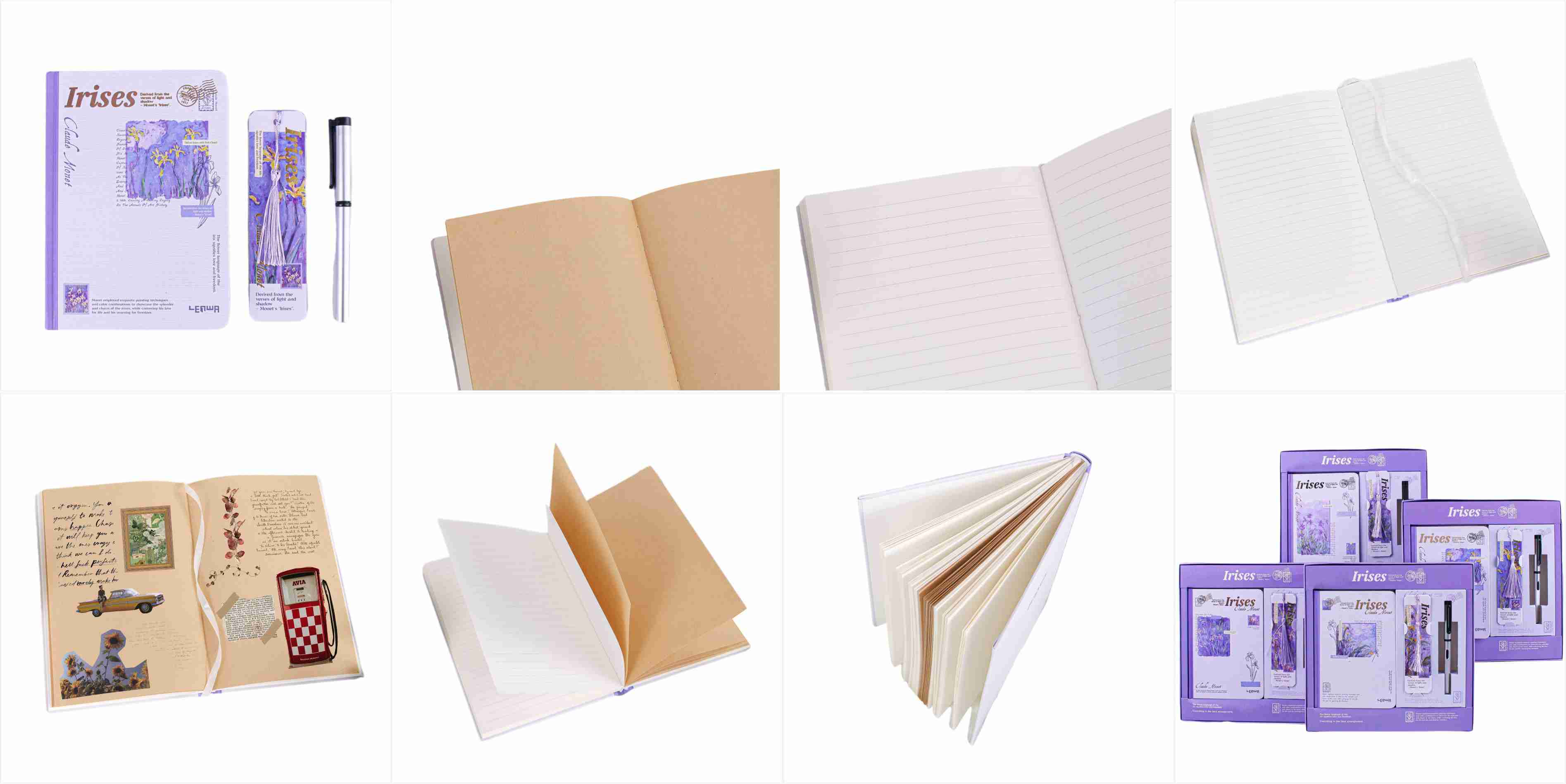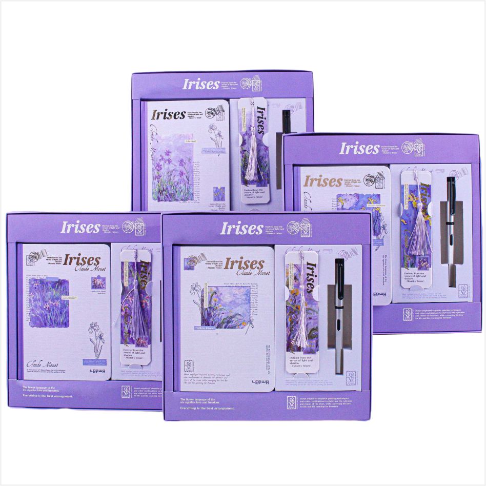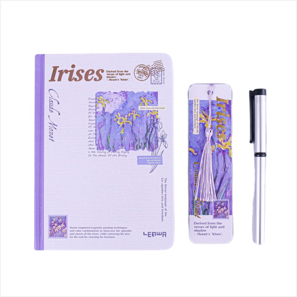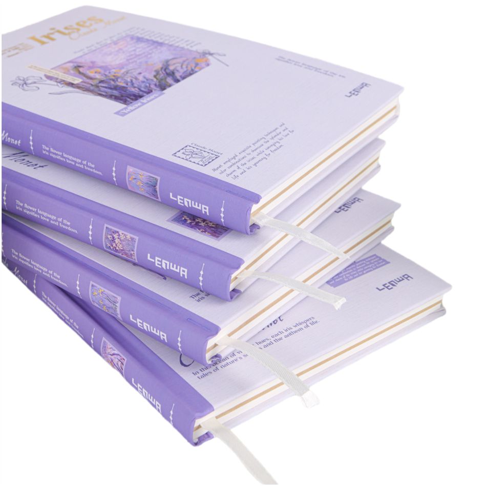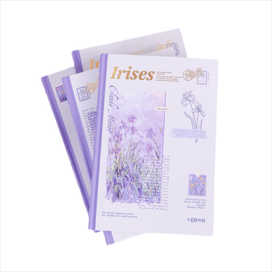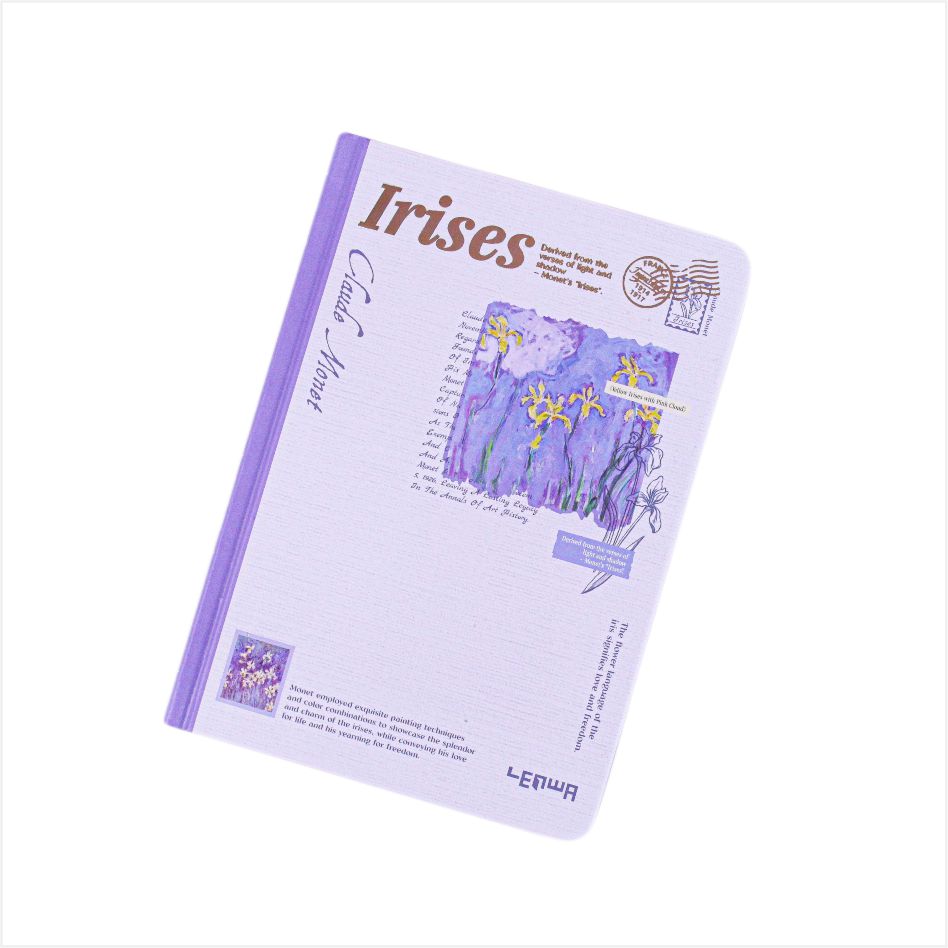 تأتي فكرة الغلاف من اللوحة الكلاسيكية من Monet ، والتي تستند إلى أرجواني ، تجمع بين الجمال الضبابي للطلاء الانطباعي مع الشكل الناعم من القزحية. يبدو أن كل دفتر ملاحظات جزء فني مأخوذ من حديقة مونيه ، مع الرومانسية الفرنسية والاهتمام الطبيعي. عند وضعها على القدر ، فهي زخرفة أنيقة. في اليد ، إنها مجموعة فنية ، مما يجعل كتابة لحظة رائعة من الحوار مع أسياد الفن.